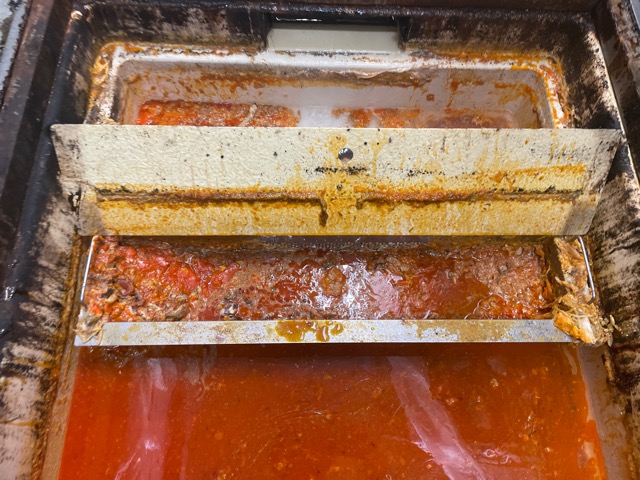 グリストラップ内の水を抜き、仕切り板、カゴ網、グリストラップ内の清掃を行いました。清掃後水を張り作業を完了しております。
