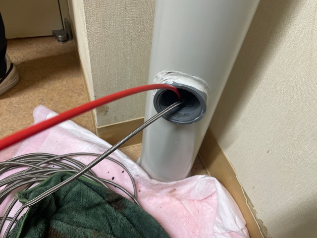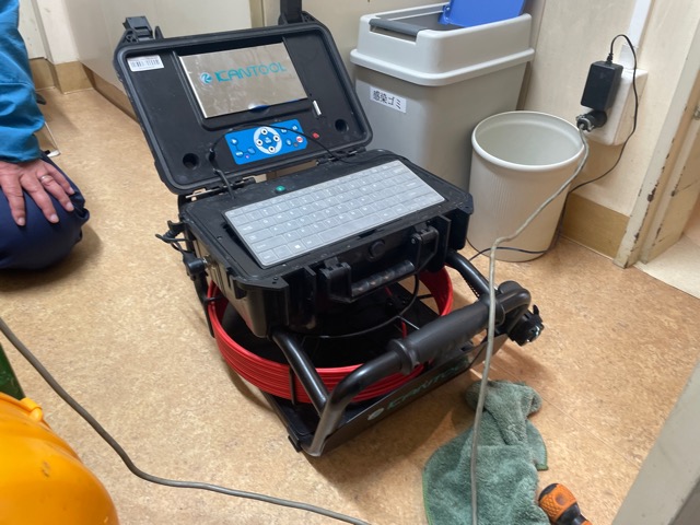 内視鏡で管内を確認しつつ高圧洗浄にて水漏れを解消しております。