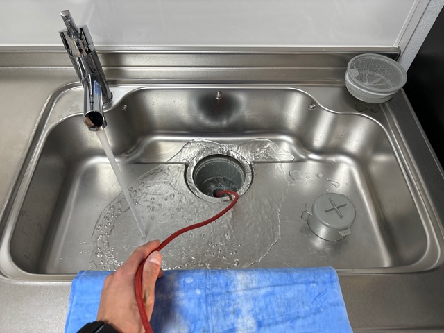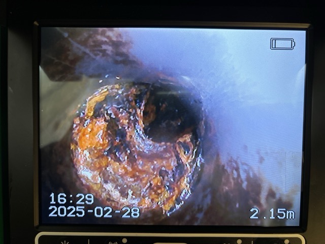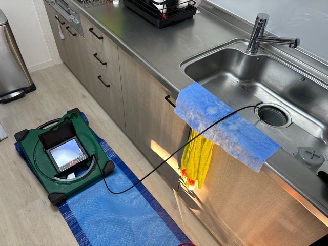 シンクより内視鏡で排水管内確認後、高圧洗浄にて汚れを落としております。