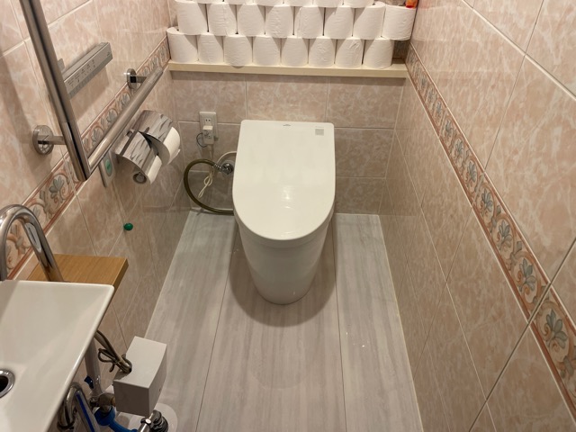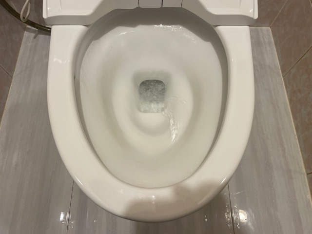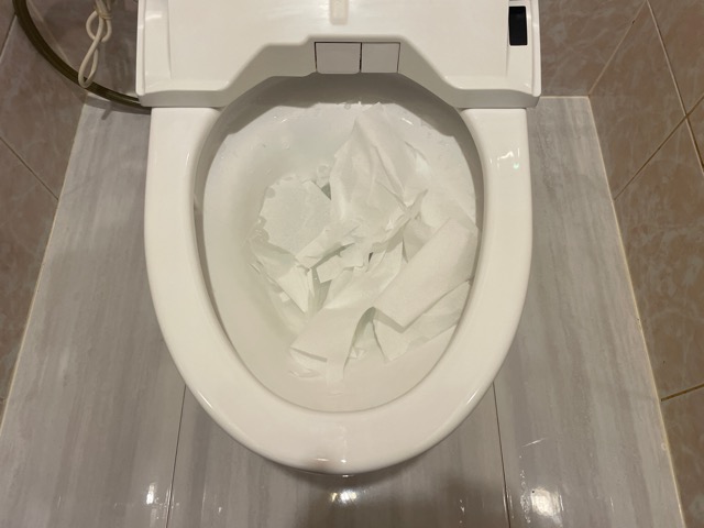 大便器復旧後、ペーパーテストを行い排水できることを確認し作業完了となります。