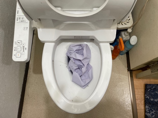 洋便器よりペーパーにて流水確認を行い作業完了となります。