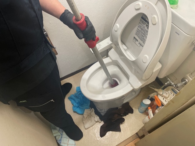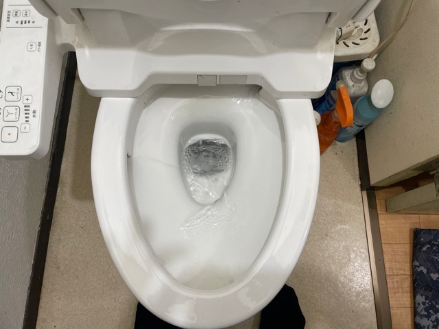 大便器にて、流水確認した所排水不良が発生しました。