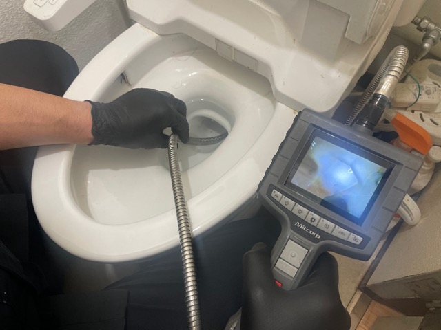 洋便器排水口より手動のワイヤーにて詰りの除去しております。