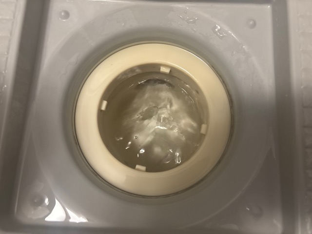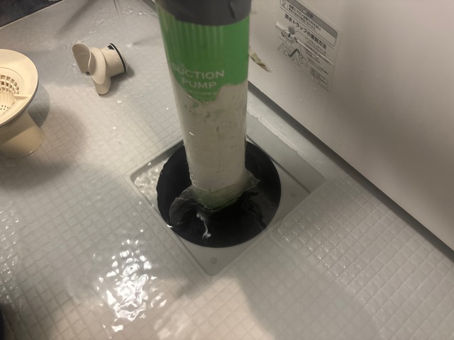 詰まり解消後、流水を行い正常に排水できることを確認し作業完了となります。