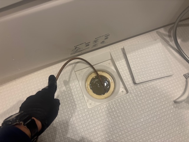 トーラー作業にて詰まりを解消し浴室とトイレより流水確認を行っております。
