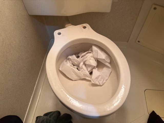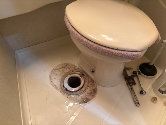 大便器を脱着し、異物を取り除いております。